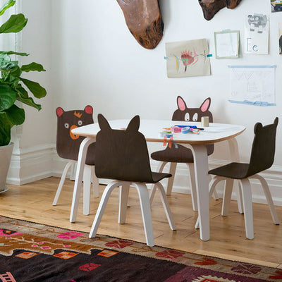 This adorable Bear Play Chairs Set by Oeuf is a fun addition to the playroom or kitchen that your kids will love. Oeuf’s strong Baltic birch bent plywood has a clean, modern aesthetic that will last as your children grow. These whimsical animal chairs go perfectly with the table as a set and are simple in style but still modern and inventive. This Oeuf Bear Play Chair Set by Oeuf is durable and easy to clean, making it the perfect addition to your playroom or kitchen.