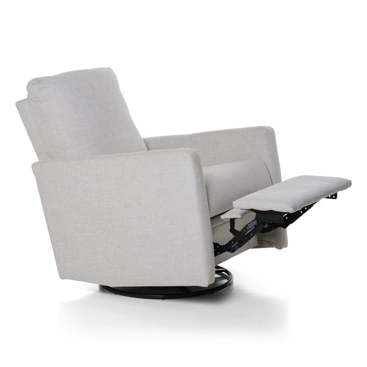 Sleek and chic, Oilo's Drew is a 360º swivel glider and a recliner all in one! With a minimalistic design, hidden recliner lever and an extra tall back support, this handcrafted piece will not only look beautiful in any nursery, but also be comfortable for the parent and safe for the child!