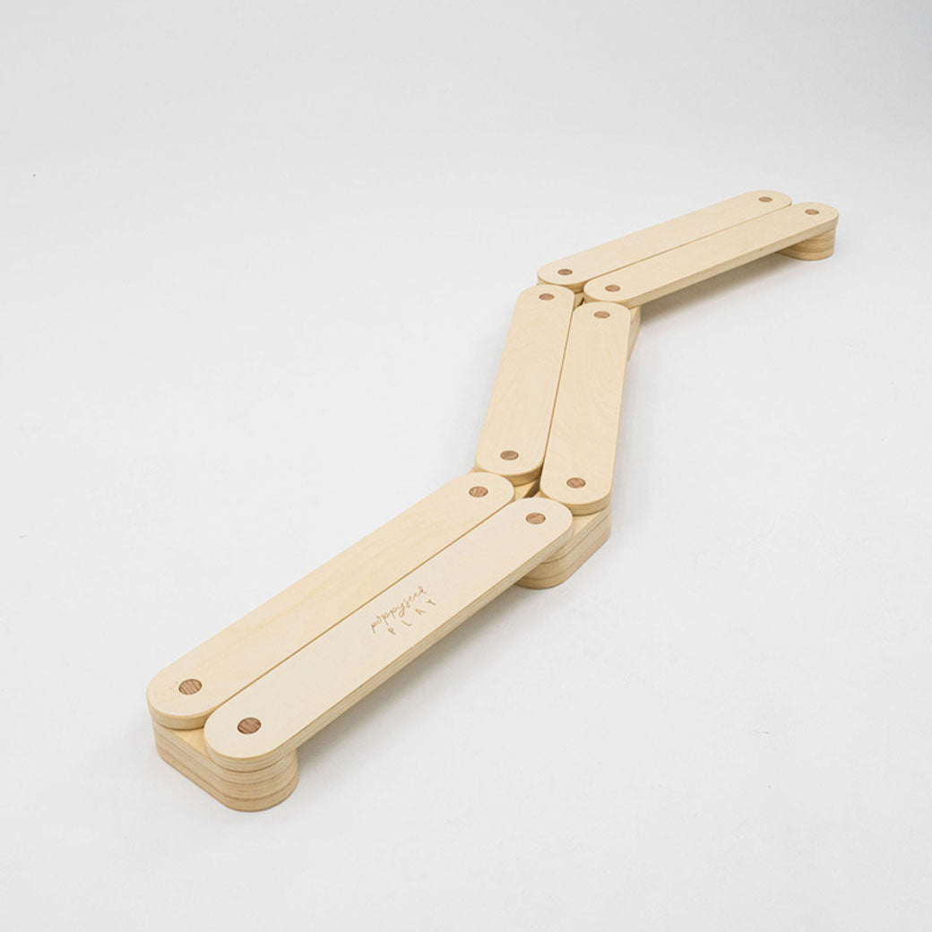 The Balance Beam by Poppyseed Play safely supports your child's natural instincts for playful movement and provides a safe environment where they can explore and strengthen their coordination and balance! Using six beams and connectors, the beam can easily be arranged in various shapes encouraging creativity and hands-on play! The Balance Beam by Poppyseed Play is a Montessori-inspired way to build up confidence and body control and offers endless games that your little gymnasts can play alone or with their friends!