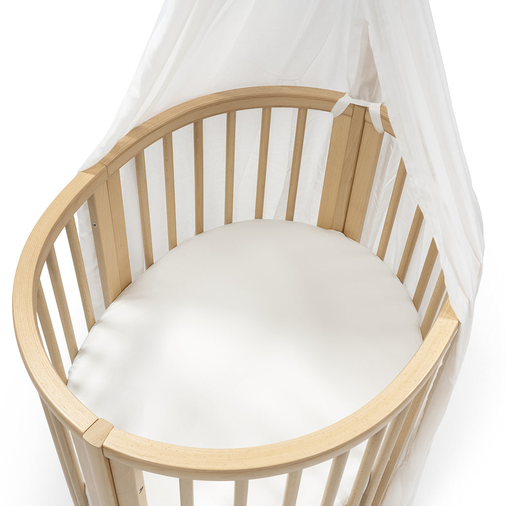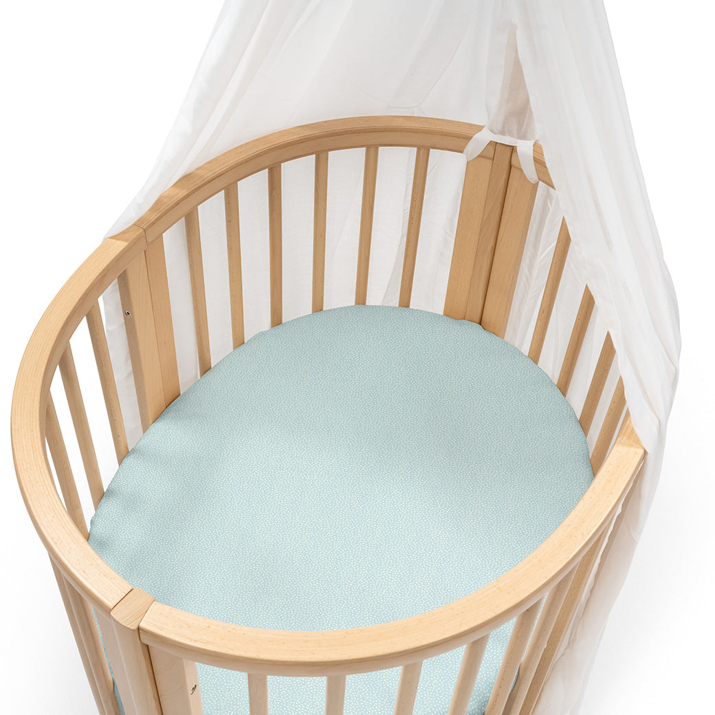 Stokke's Sleepi V3 Mini Fitted Sheet is made to perfectly fit their Sleepi V3 Mini Crib. Made of 100% OEKO-TEX certified soft cotton percale, with elastic all the way around so you can rest assured the sheet will stay in place at all times.