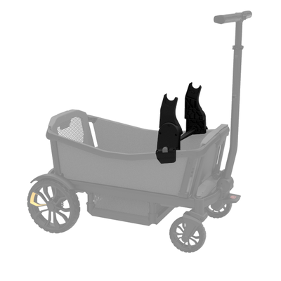 Veer’s Infant Car Seat adapters for major brands of infant car seats quickly and intuitively fasten to the Cruiser’s frame, enabling infants to live the Veer experience. You may place your car seat in any of four positions: facing you, facing the outside world, and above the front or back seat of Cruiser. Designed for Britax, Uppababy, Peg Perego, Chicco, Graco, Cybex, Nuna & Maxi-Cosi seats.