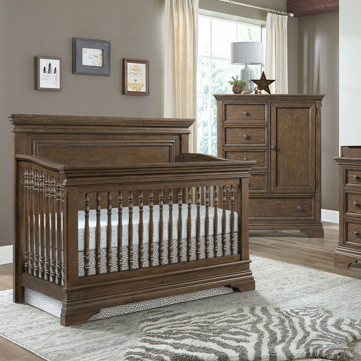 - 4 in 1 crib converts to toddler bed, day bed and full size bed (toddler rail and full size rails sold separately)